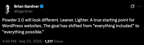 Brian Gardner is taking his Powder theme and using a new (but increasingly popular) approach - everything possible instead of everything being included. Powder is already a rock-solid theme, so it'll be interesting to see what that means.